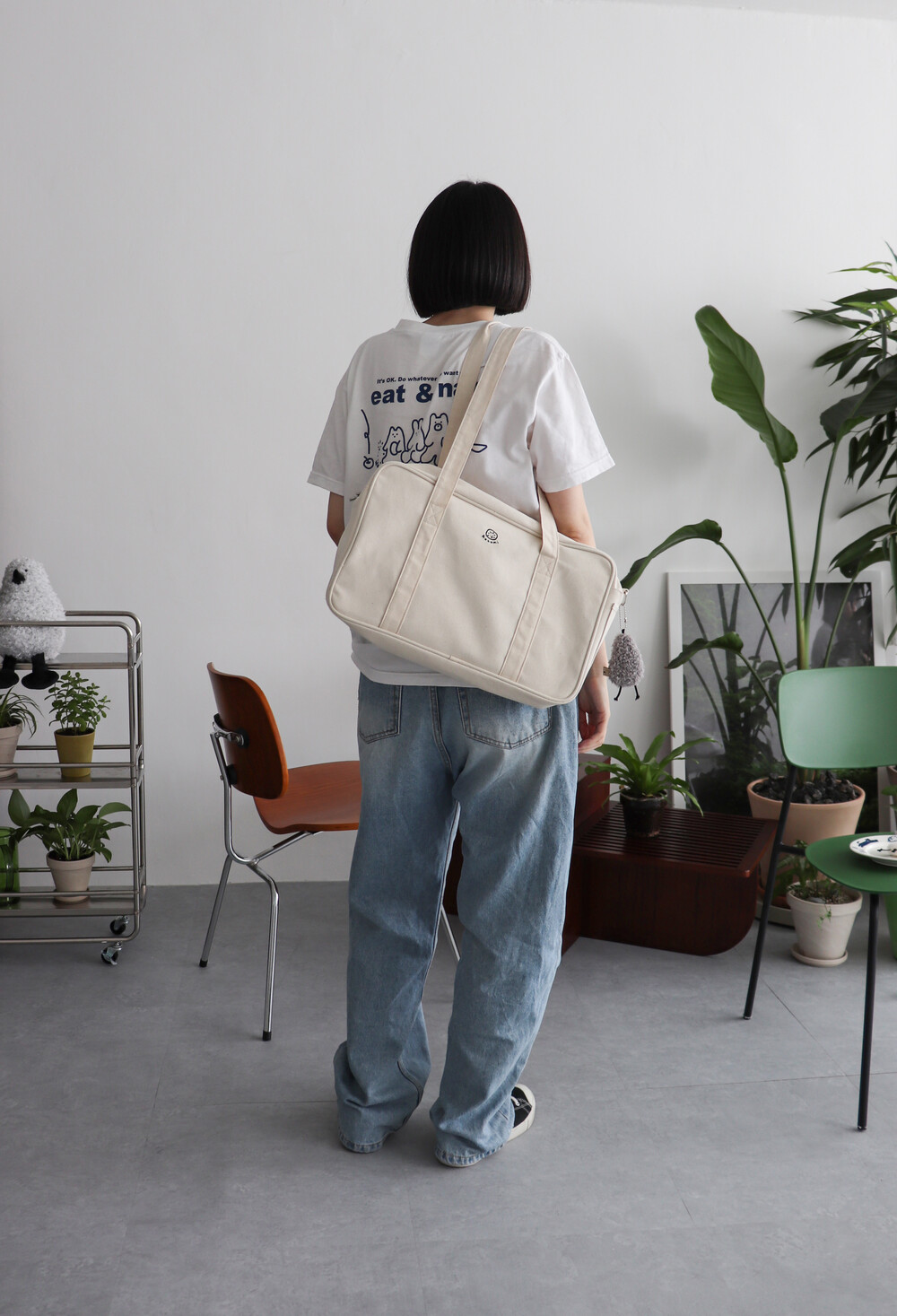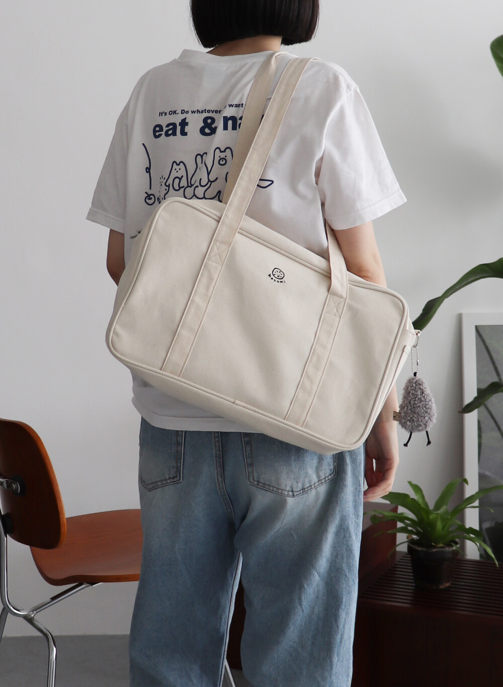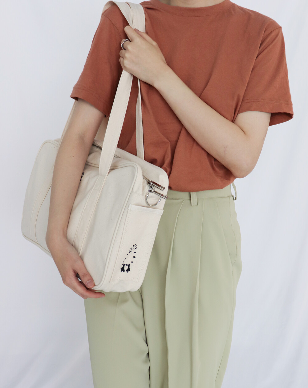 내추럴한 아이보리 컬러에 검정색 자수를 넣어