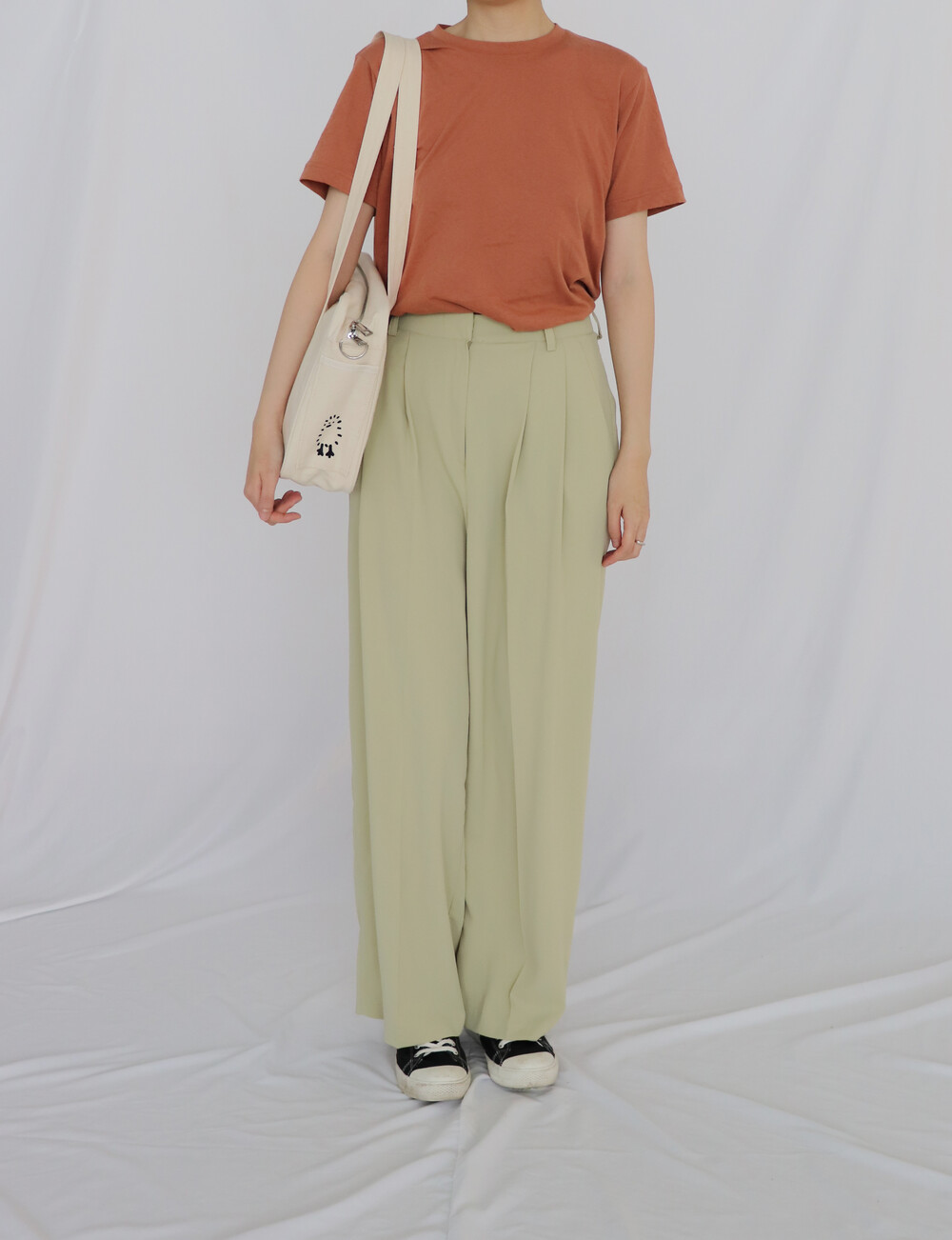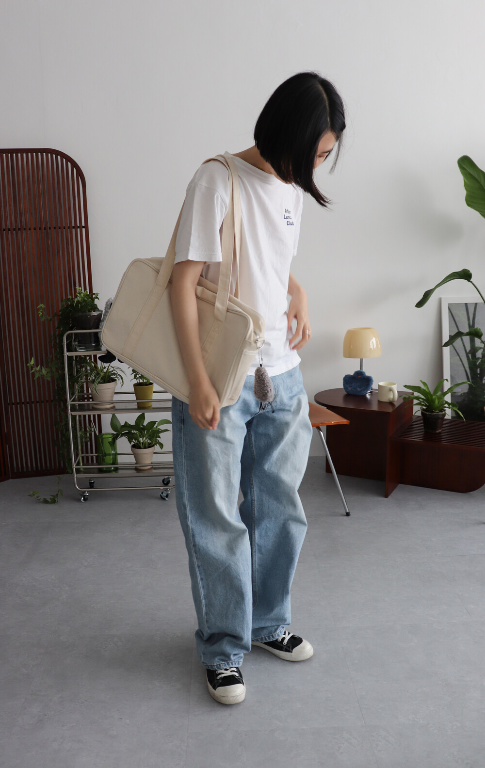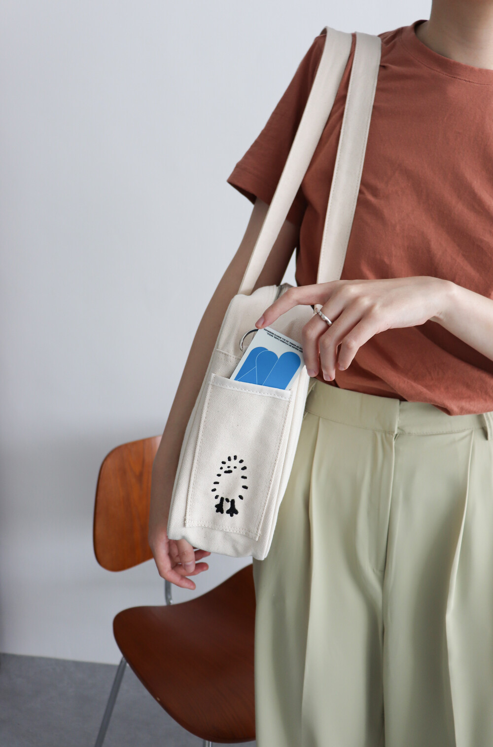 내추럴한 아이보리 컬러에 검정색 자수를 넣어