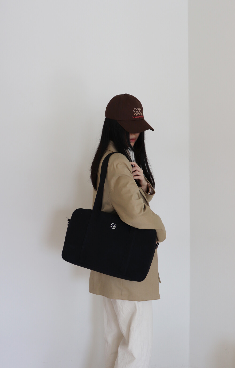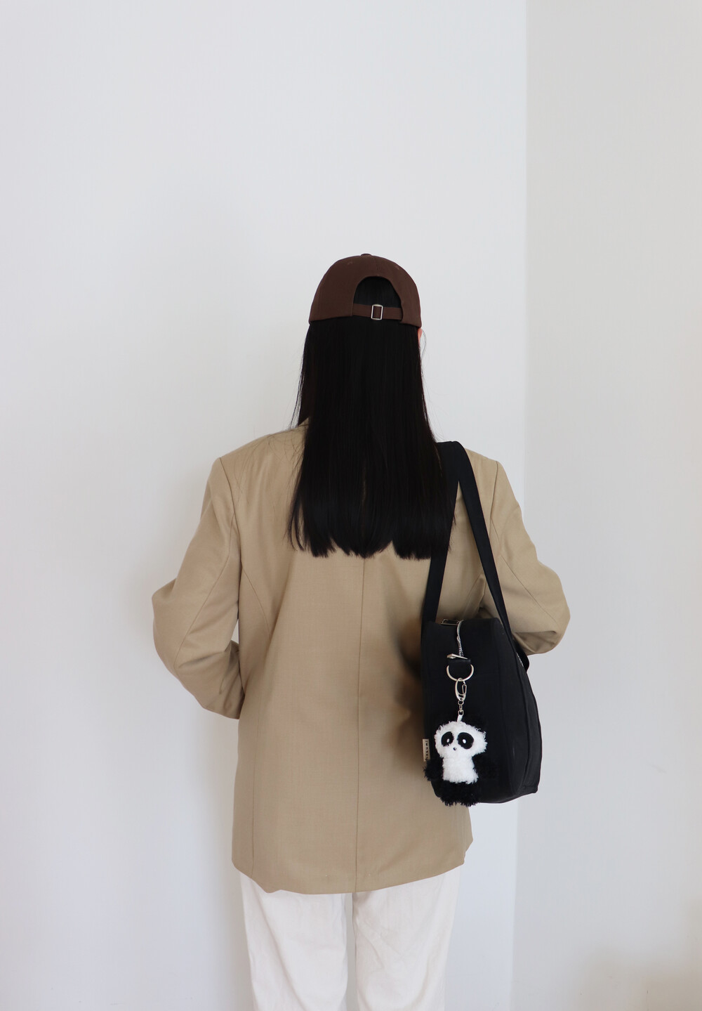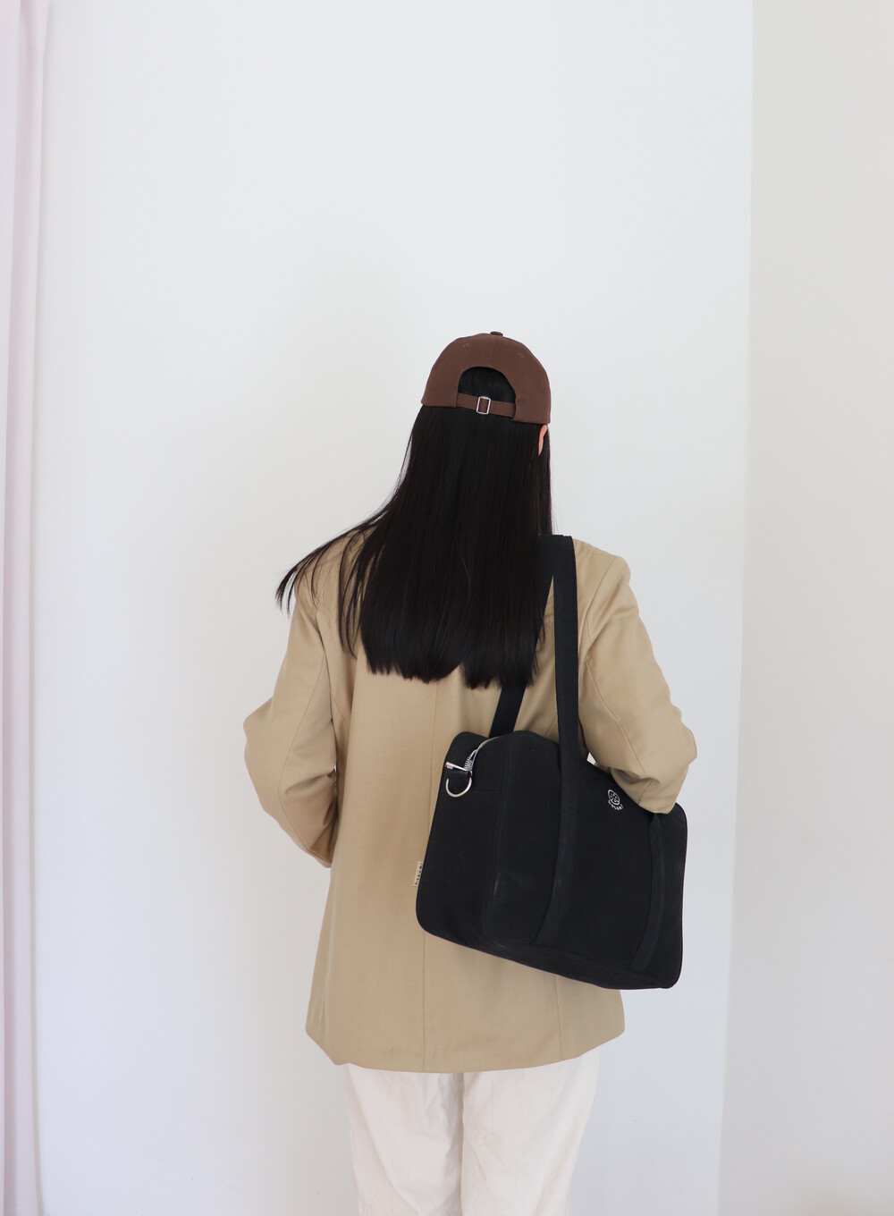 어깨에 멨을 때 허리 근처에서 머무는 안정적인 길이감으로,