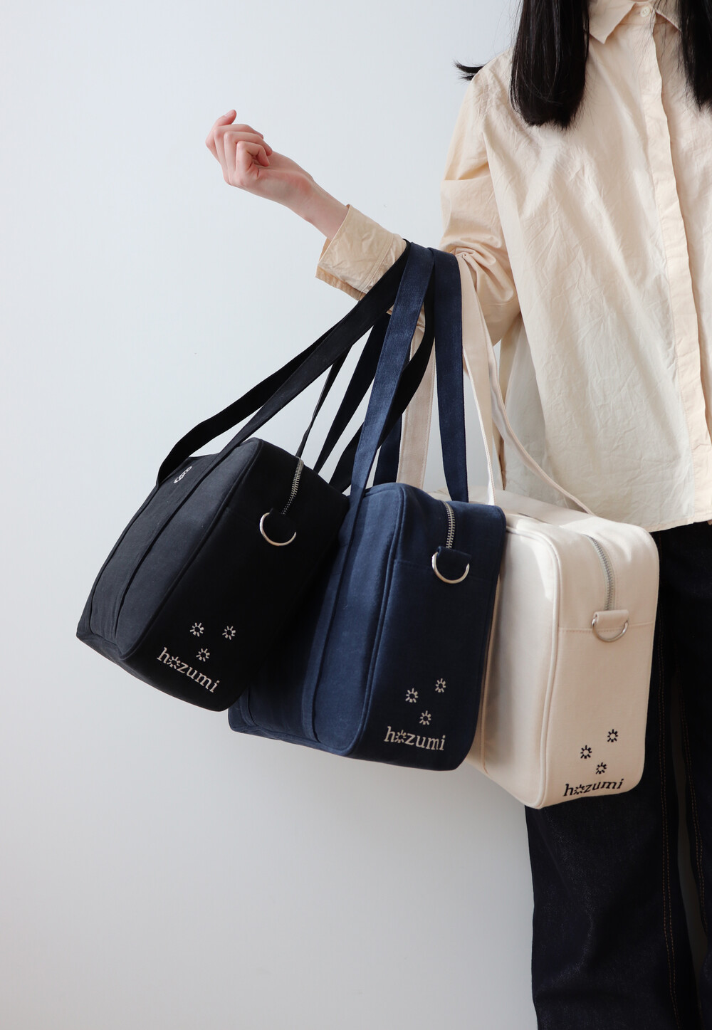 외부 측면에 호즈미의 새로운 로고 디자인을 자수로 놓아
