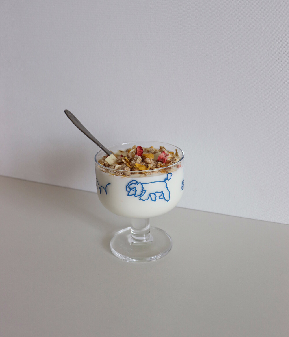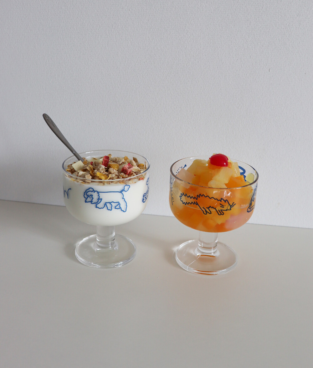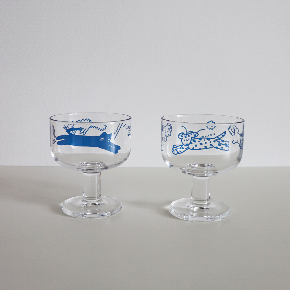 투명한 내열 유리에 클래식한 네이비 컬러의 일러스트가 프린트된 글라스볼입니다.