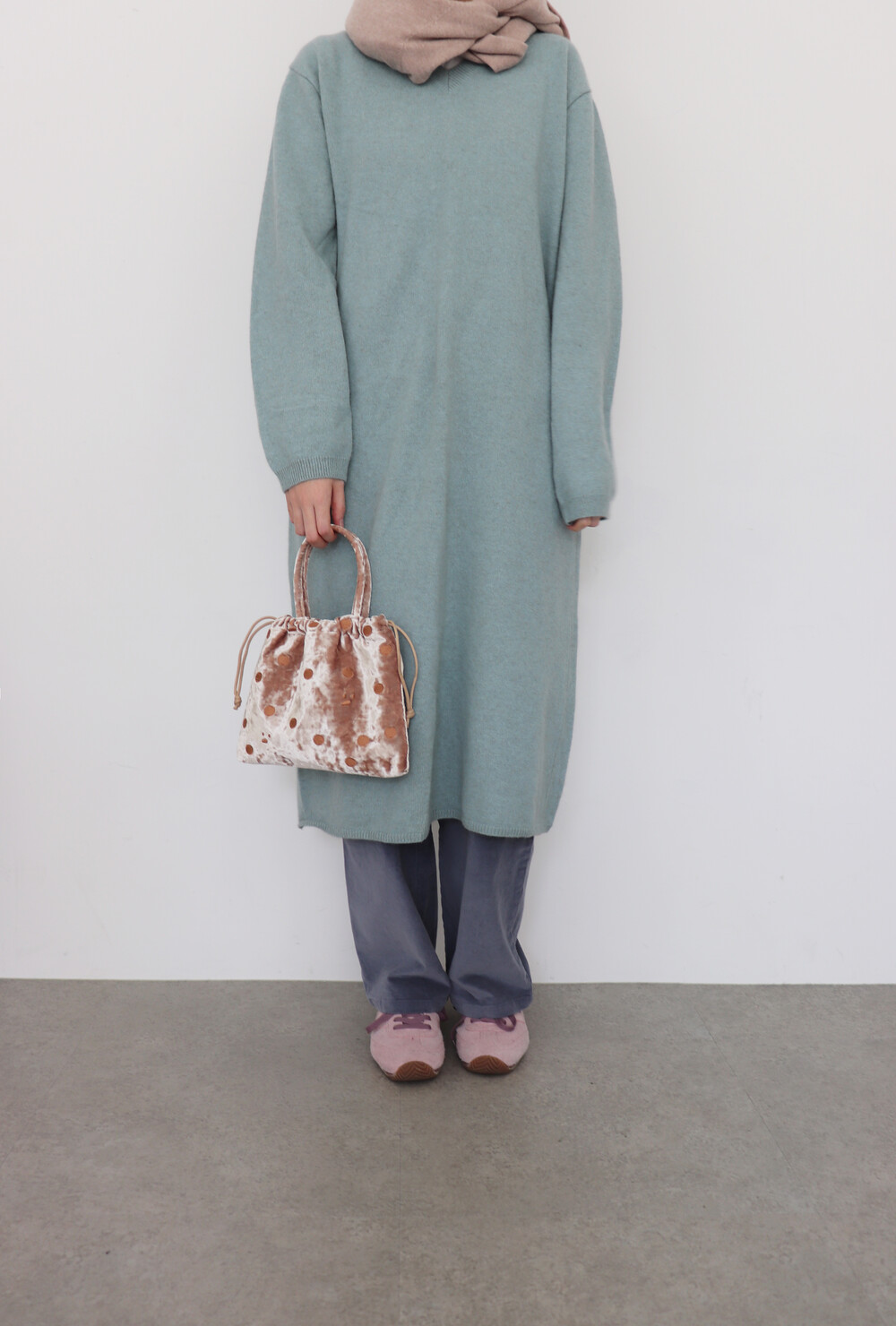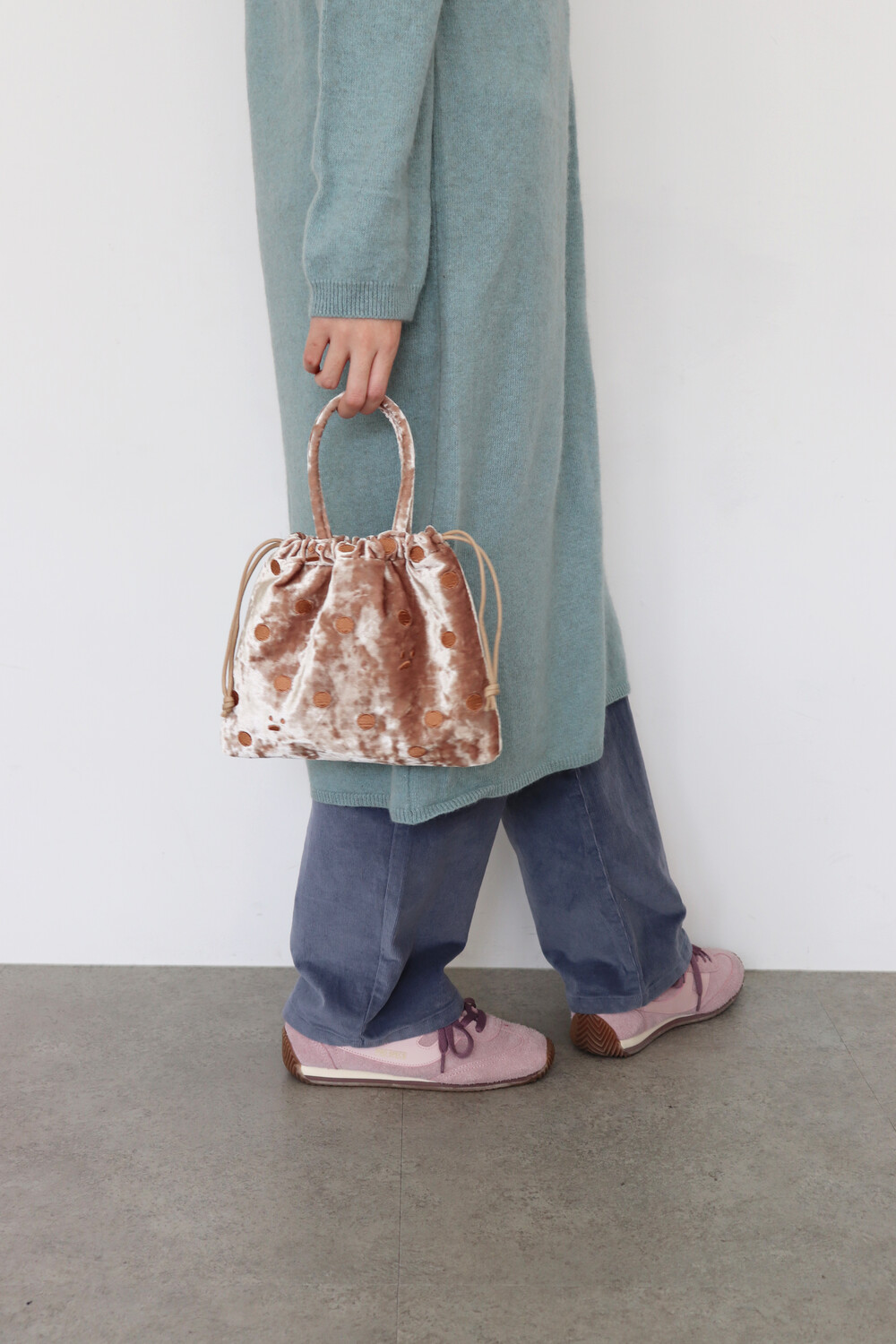 부드러운 벨벳과 브라운 컬러의 자수가 조화로운 베이지 컬러입니다.