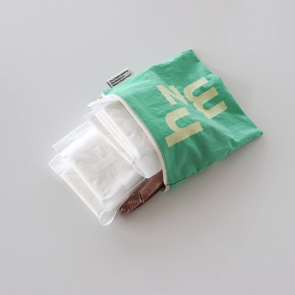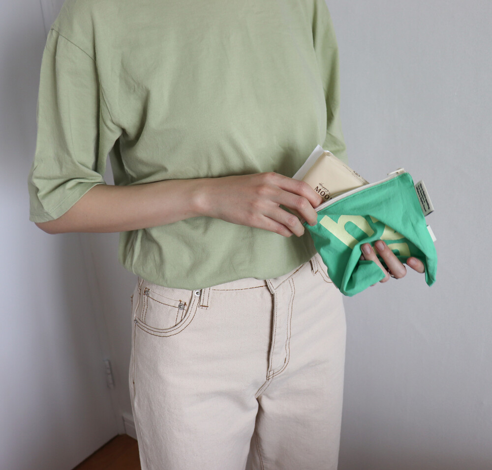 정사각형 모양의 넉넉한 사이즈로 화장품, 핸드크림, 여성용품, 전자기기 등 다양한 종류의 소지품을 수납하기에 편리합니다. 큰 사이즈의 생리대나 탐폰도 여유롭게 들어가는 사이즈입니다.