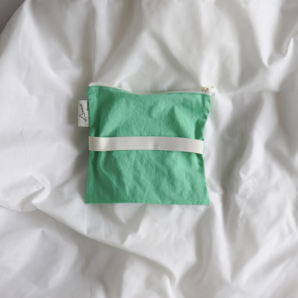 기존 파우치들과 다르게 뒷면에 밴딩을 부착하여 편리함과 실용성을 더했습니다.