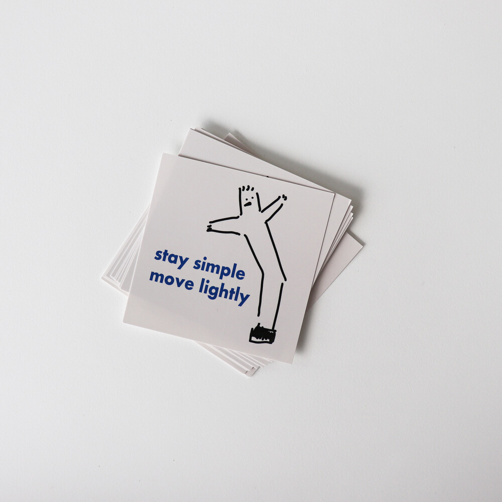 가볍게 움직이는 듯한 바람 인형 세이호와 플랫 포켓의 슬로건이 함께 담긴 심플하고 귀여운 스티커입니다.