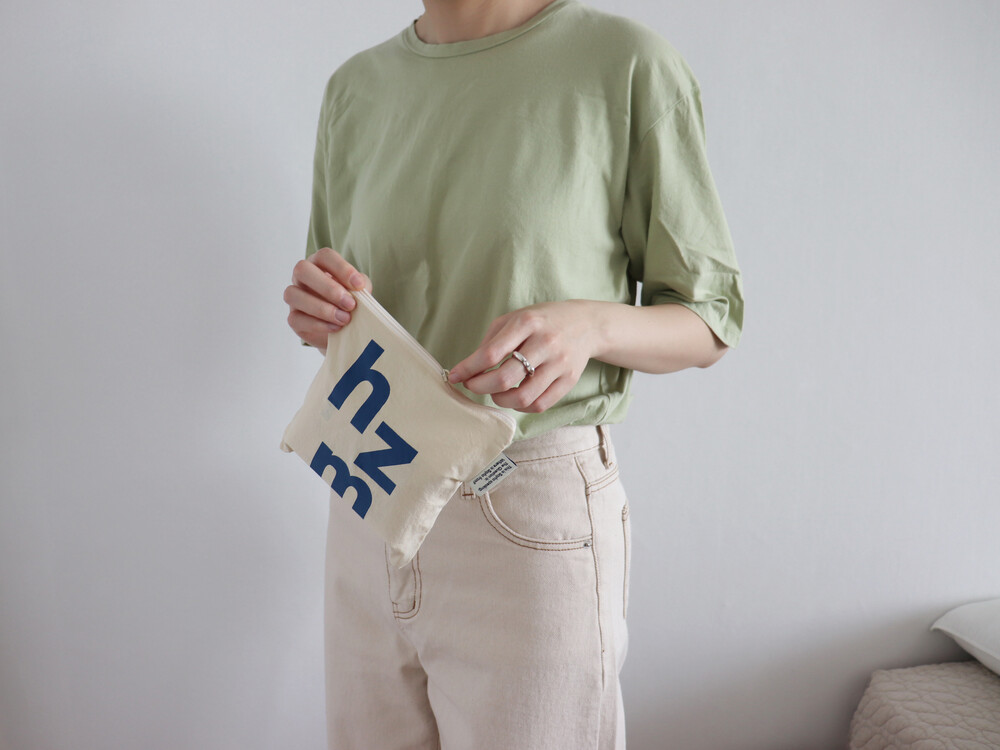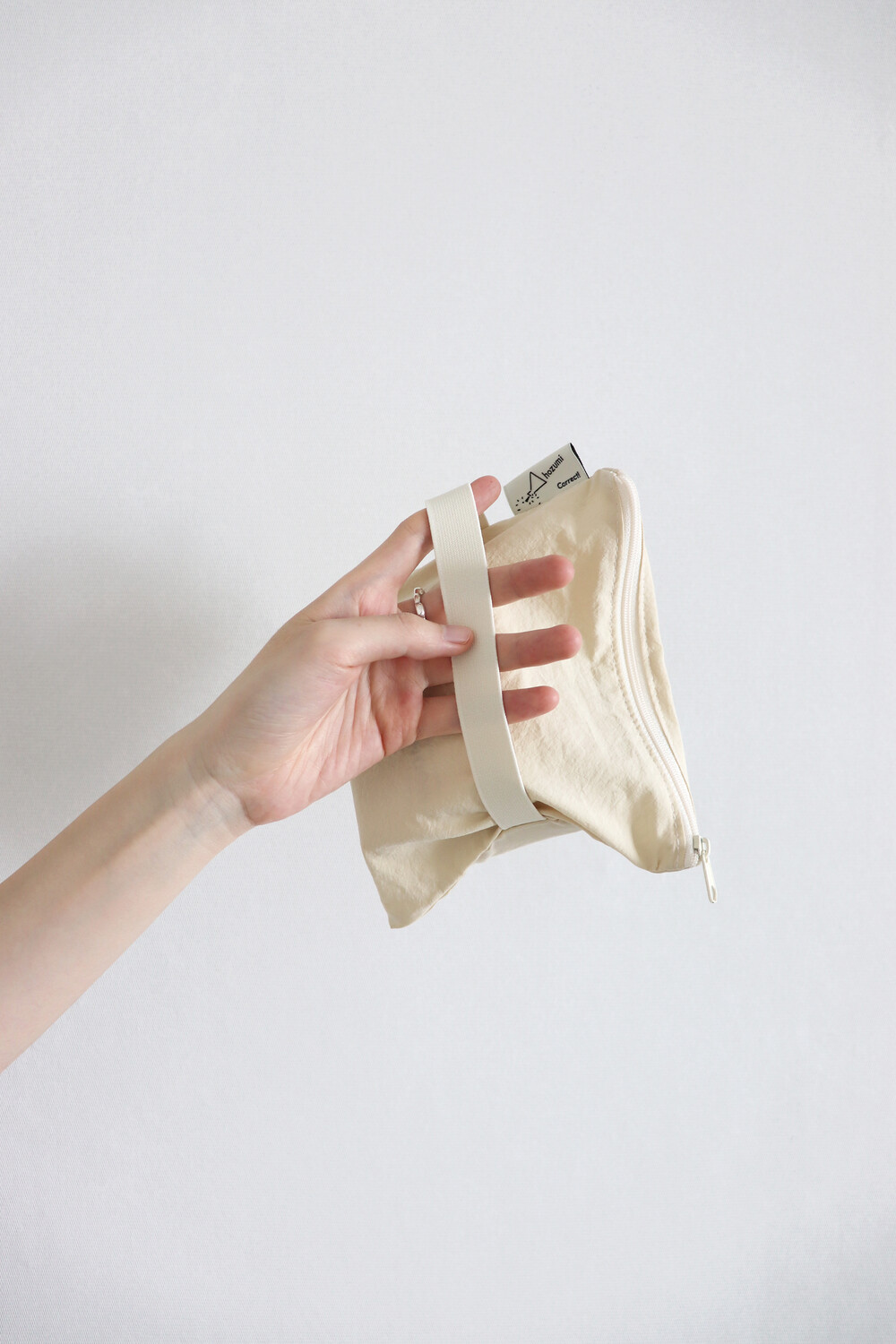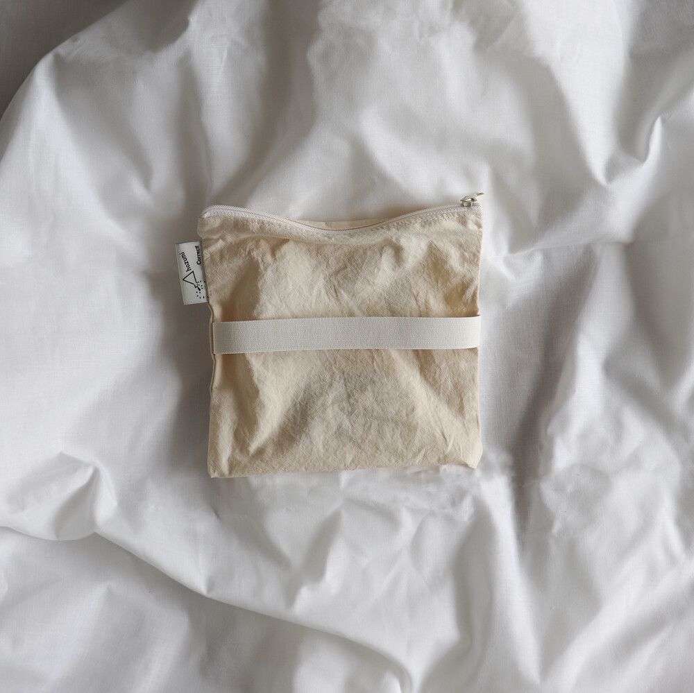 기존 파우치들과 다르게 뒷면에 밴딩을 부착하여