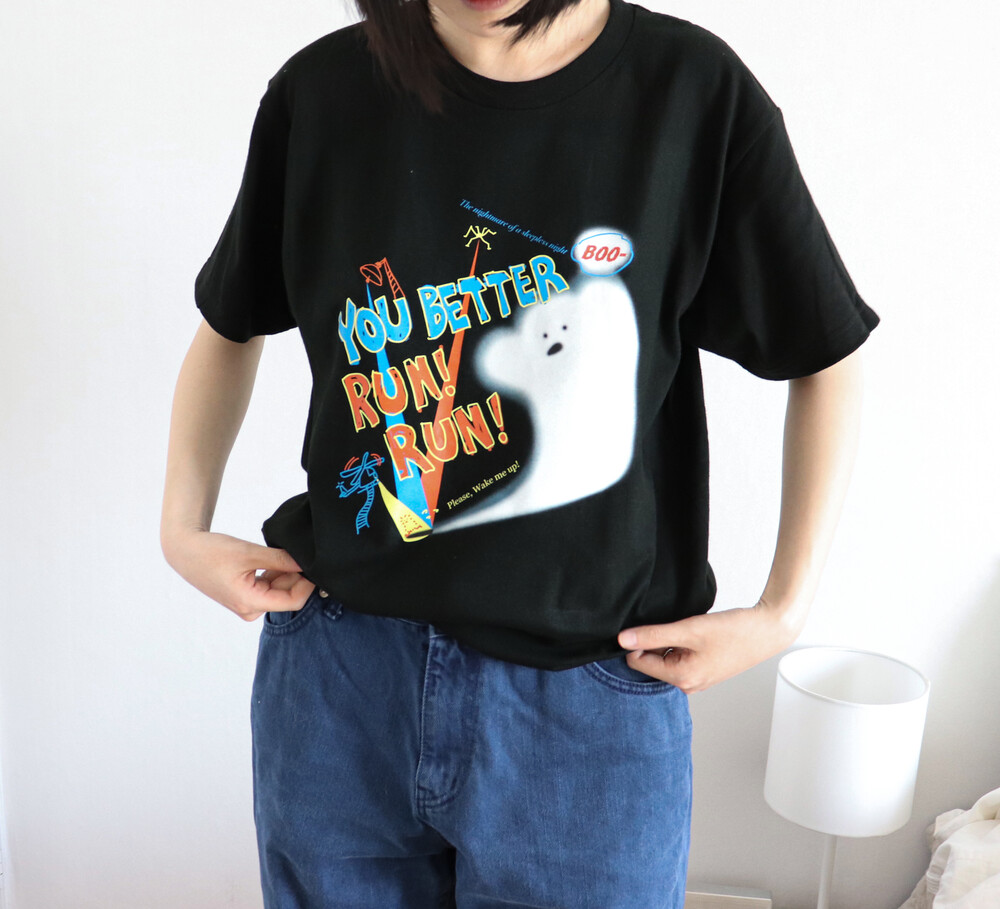 화려하고 발랄한 일러스트 프린팅으로 지루하지 않은 룩을 연출할 수 있습니다. 간편한 옷차림에 포인트 주기에 좋으며, 단품으로 착용 시 더욱 돋보이는 제품입니다.