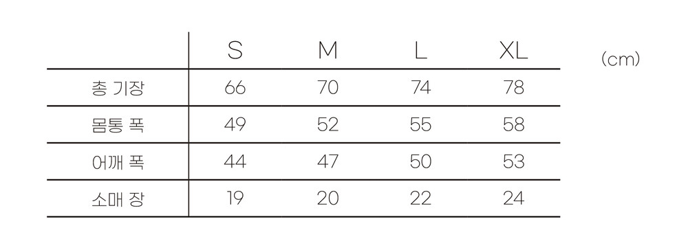 S, M, L, XL 까지 총 4가지 사이즈로 제작되어, 체형과 스타일에 따라 다양하게 선택이 가능합니다.