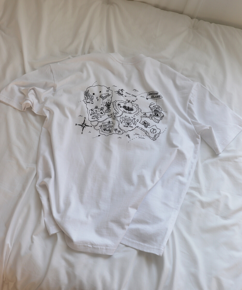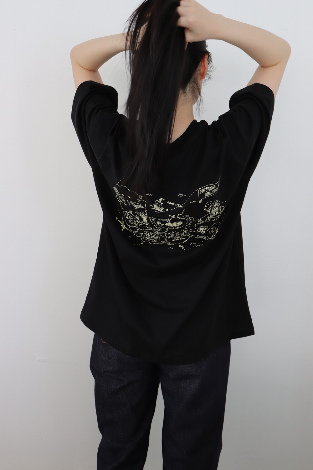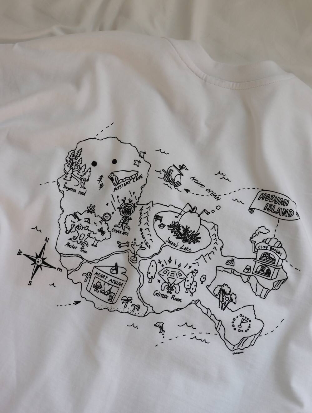 호즈미의 세계관이 담긴 호즈미 아일랜드 지도가 그려진 티셔츠입니다.