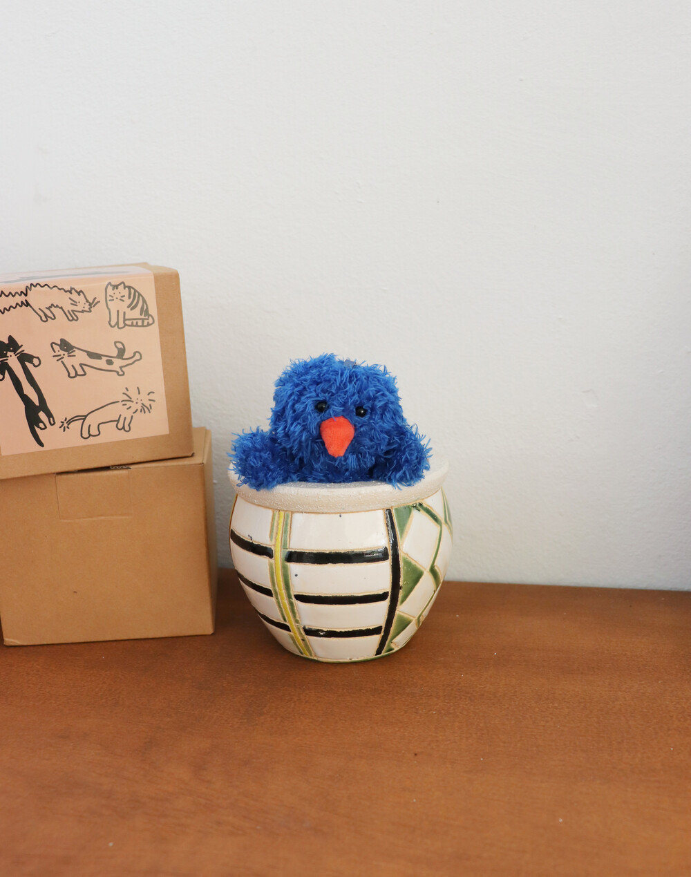 선명한 블루 컬러에 주황색 부리와 다리가 포인트입니다.