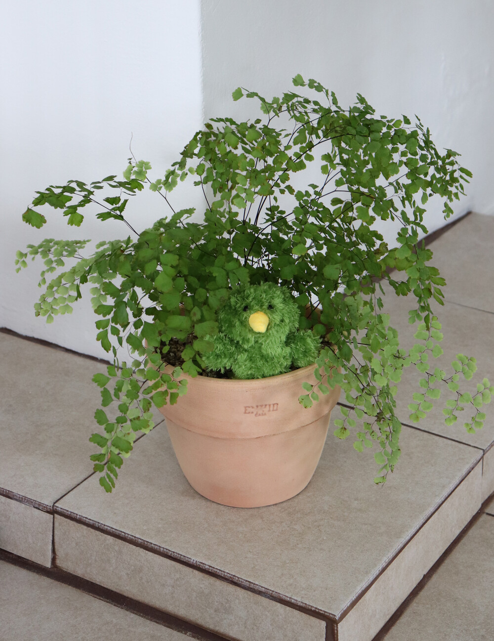 싱그러운 그린 컬러에 노란색 부리와 다리가 포인트입니다.