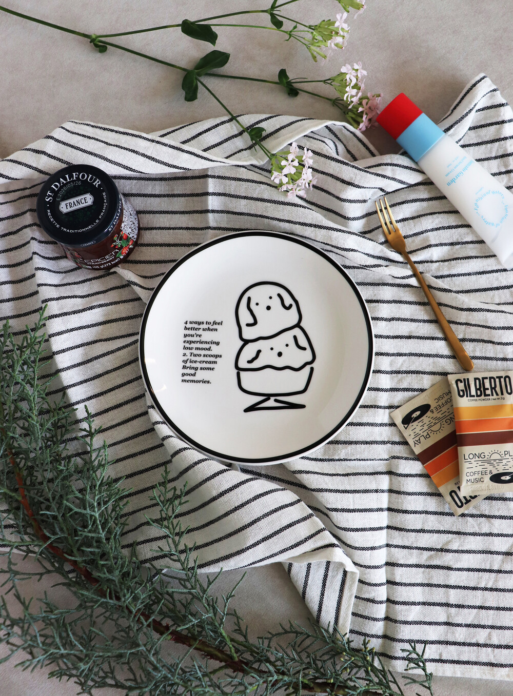 담백한 아이보리 컬러와 접시 테두리에 들어간 블랙 라인이