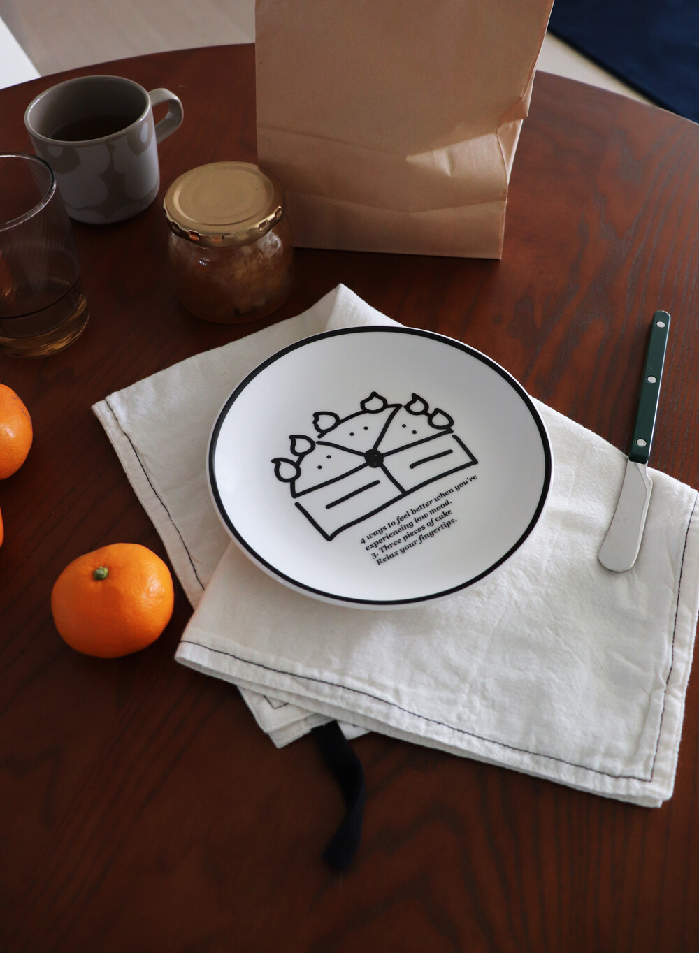 담백한 아이보리 컬러와 접시 테두리에 들어간 블랙 라인이