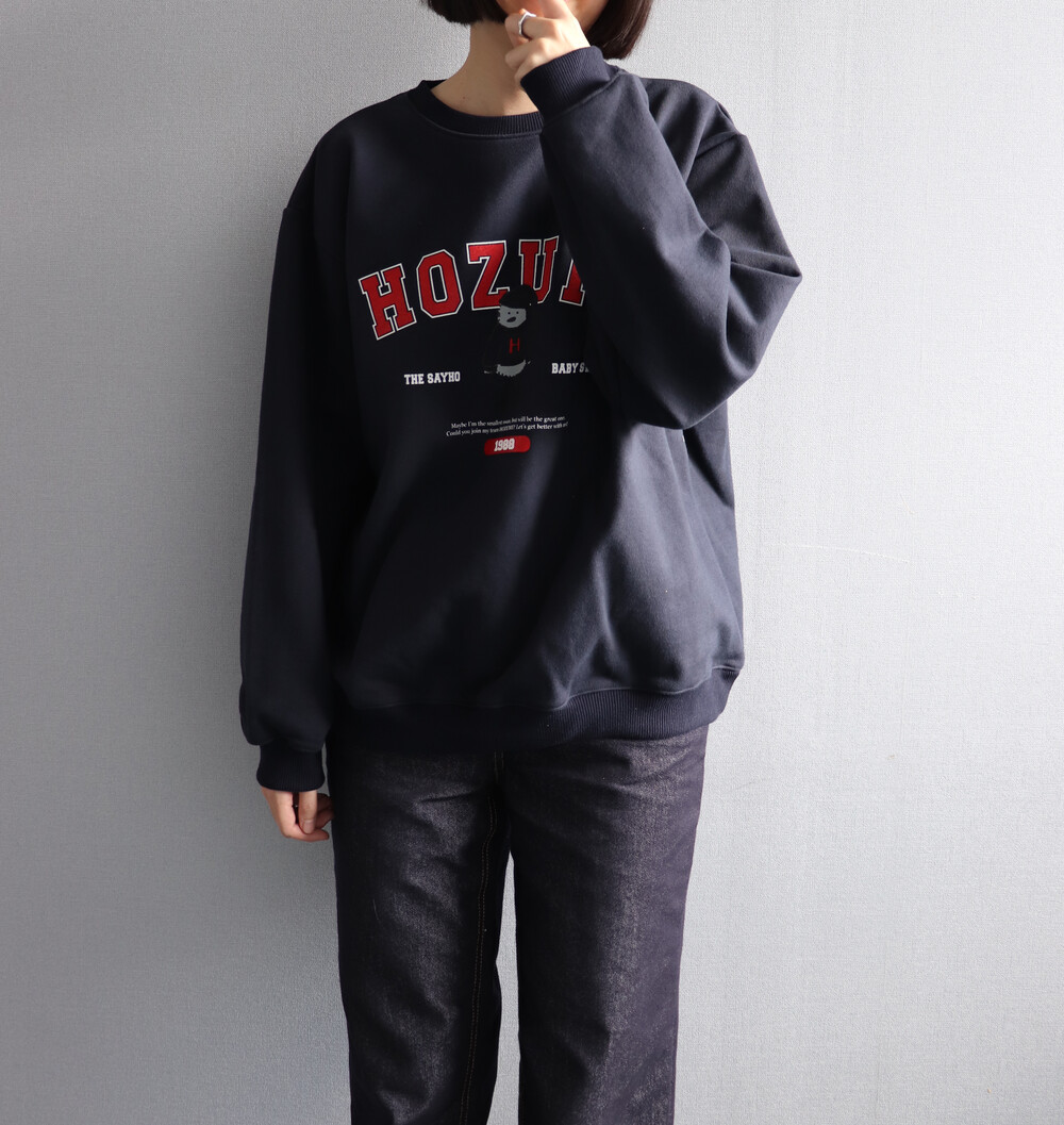넉넉한 오버핏으로 착용할 수 있습니다. 가슴 단면과 총장이 넉넉하여 남성 분들도 착용이 가능합니다. 이너를 껴입거나 박시한 핏을 연출하고 싶을 때 추천드립니다.