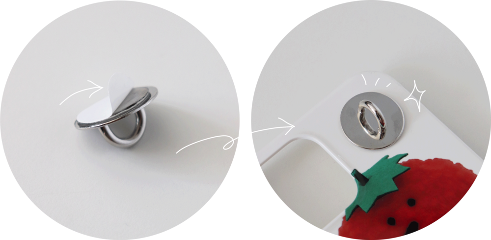 케이스 뒷면의 원하는 위치에 부착해 주세요.