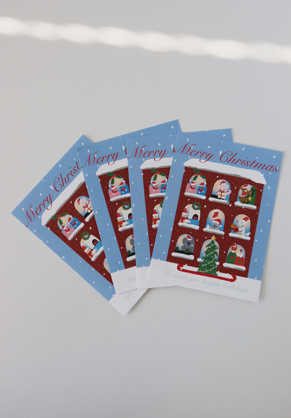 눈 내리는 풍경 속 아기자기한 일러스트로