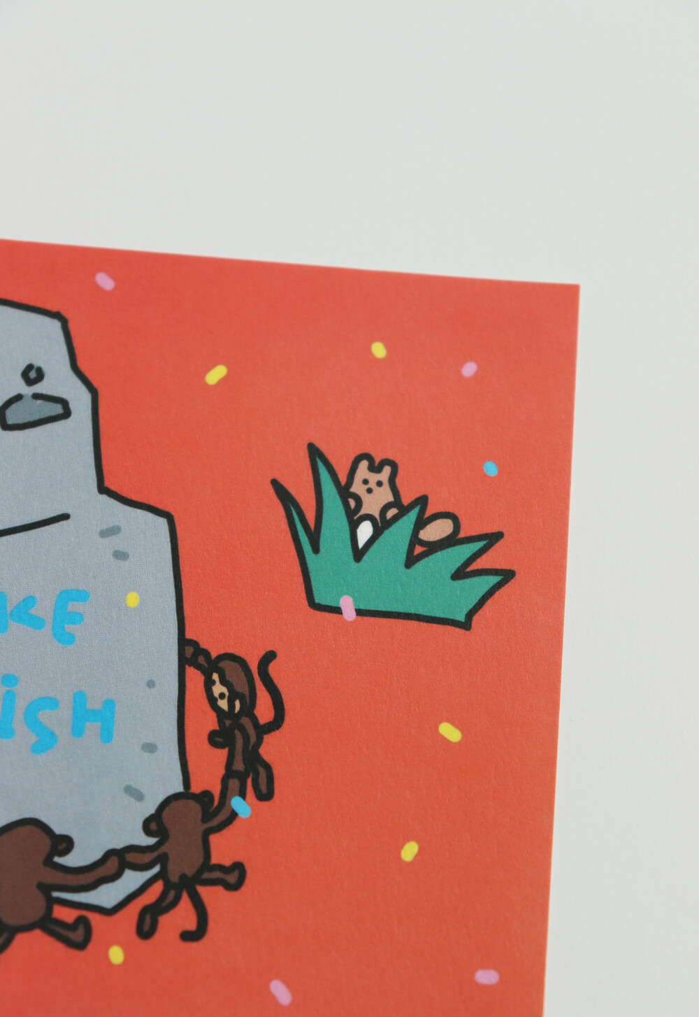 소원을 비는 동물들의 모습을 담은 엽서입니다.