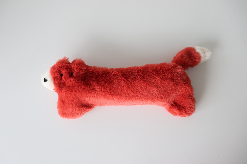 쫑긋 솟은 귀, 둥글게 내민 발, 그리고 콕콕 찍은 듯한 까만 눈과 코를 지닌 레드 폭스입니다.