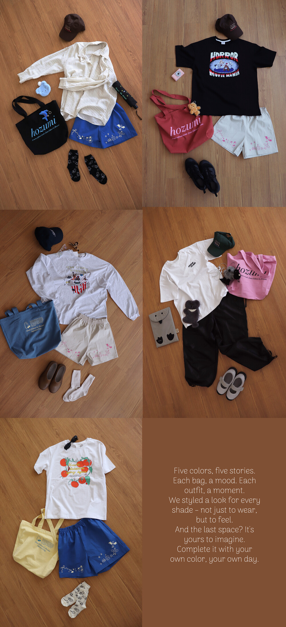핑크, 레몬, 블루, 브릭, 블랙 5가지 컬러로 구성되어 있습니다.