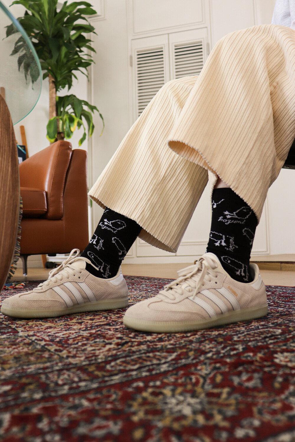 - 원단에 작은 점이나 잡사 또는 실밥이 섞여 있거나 반점, 올 튀어나옴 등이 있을 수 있습니다. 또는 실 짜임 특성상 패턴의 크기 및 위치가 일정하지 않을 수 있습니다. 이는 제작 공정상 자연스럽게 나타나는 현상으로, 불량 사유가 되지 않는 점 참고 부탁드립니다.