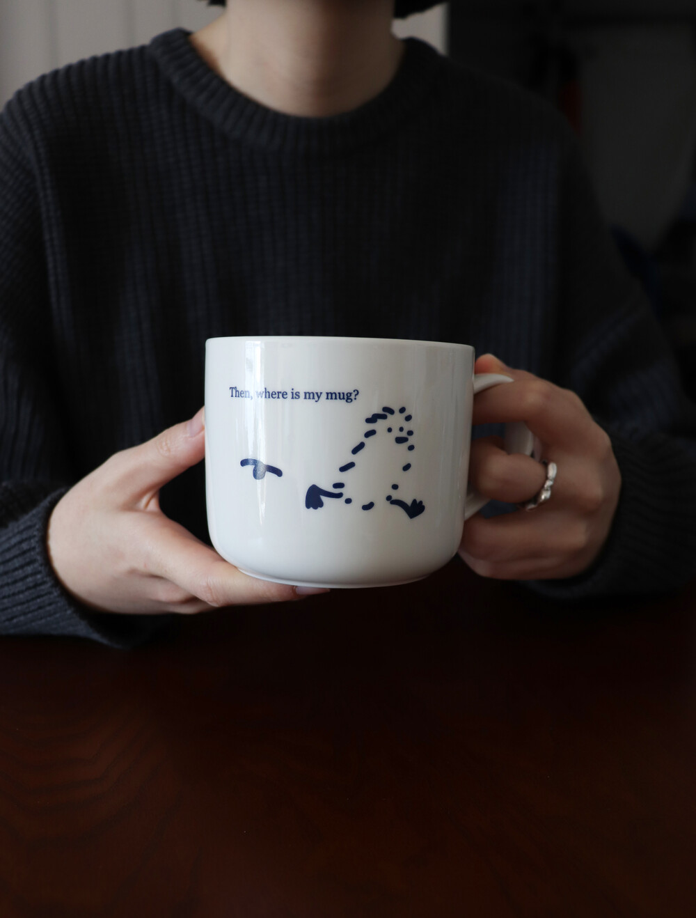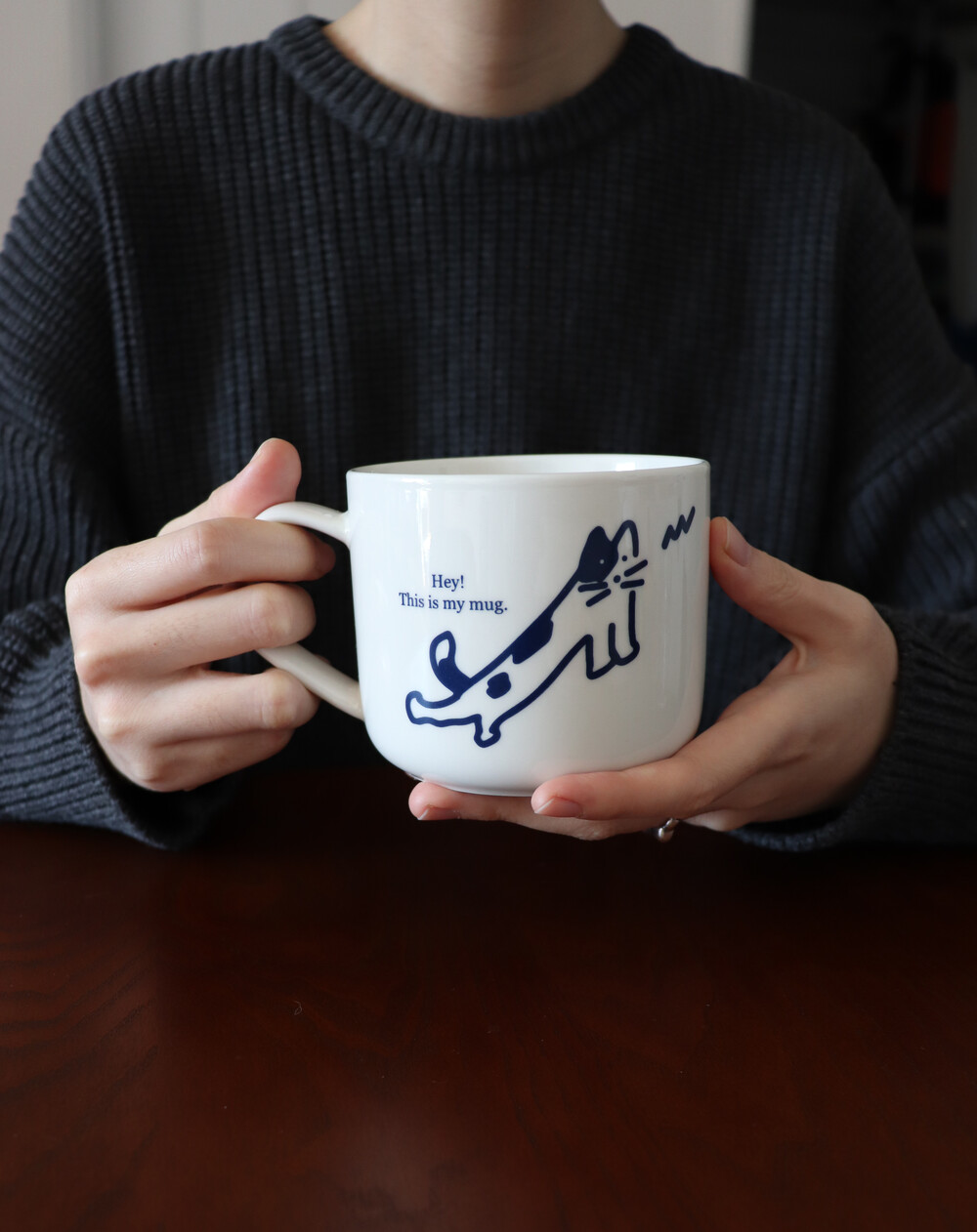 클래식한 네이비 컬러의 일러스트가 매력적인 머그입니다.