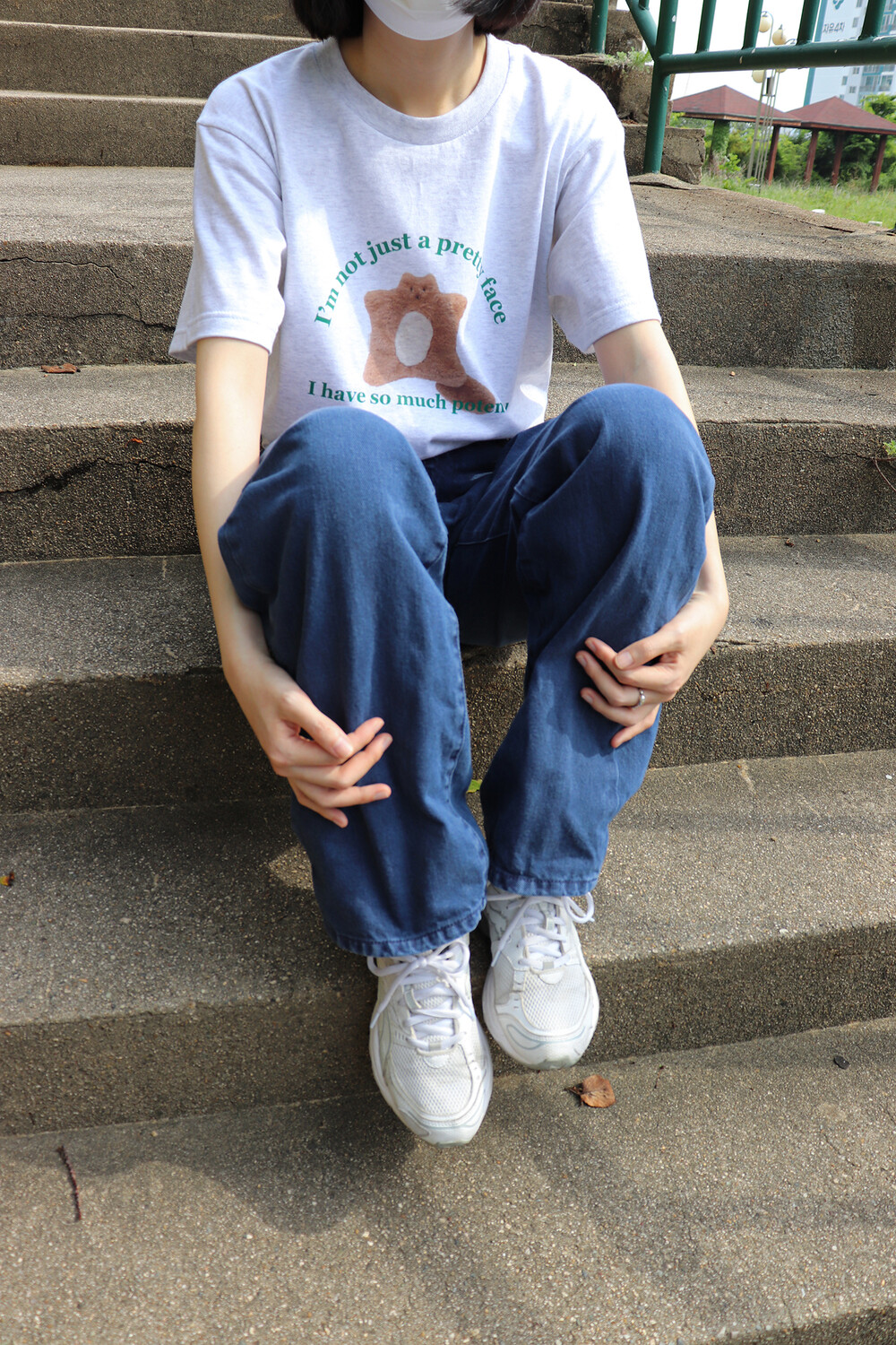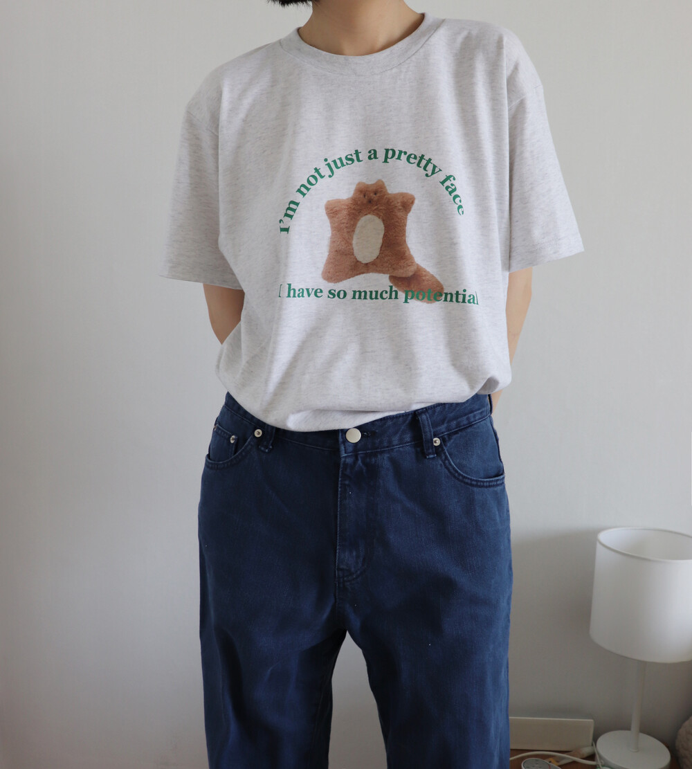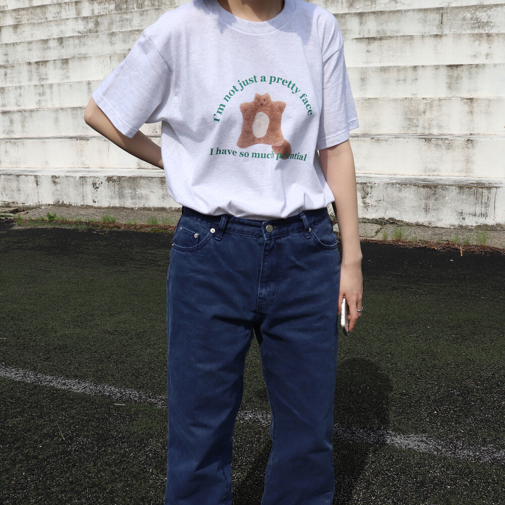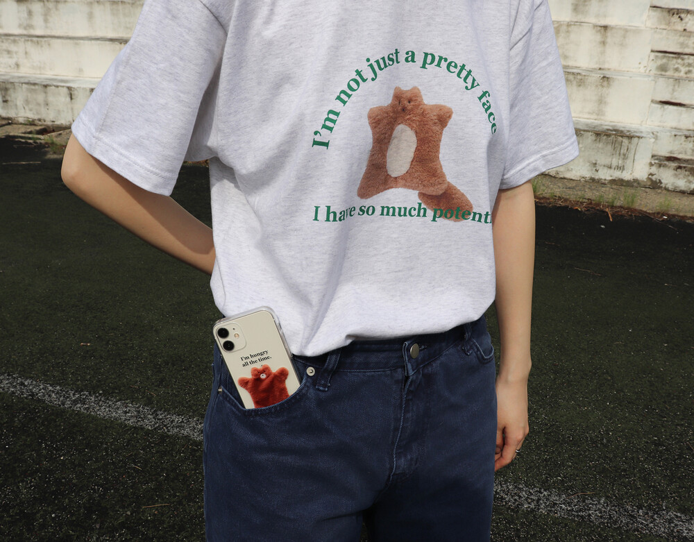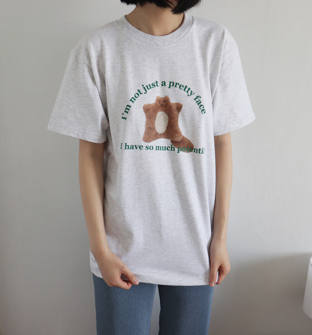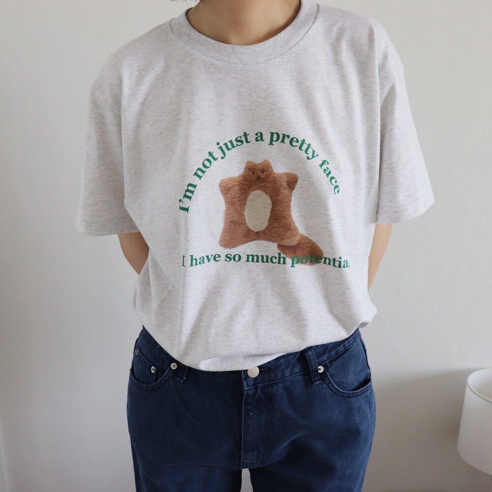 귀여운 스쿼럴의 정면 모습과 톡톡 튀는 그린 컬러의 레터링이 포인트입니다. 다양한 룩에 잘 어울려 편하게 매치하기 좋습니다.
