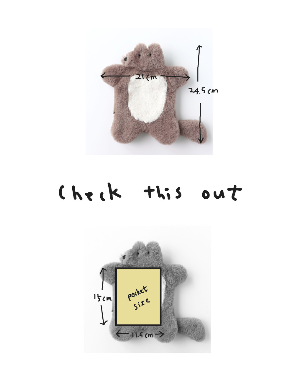 - 디자인 및 소재 특성상 눈과 코가 주변 털에 가려져 잘 보이지 않을 수 있습니다. 수령 후 비닐을 제거하시고 손으로 눈과 코 주위의 털을 정리해주세요.
