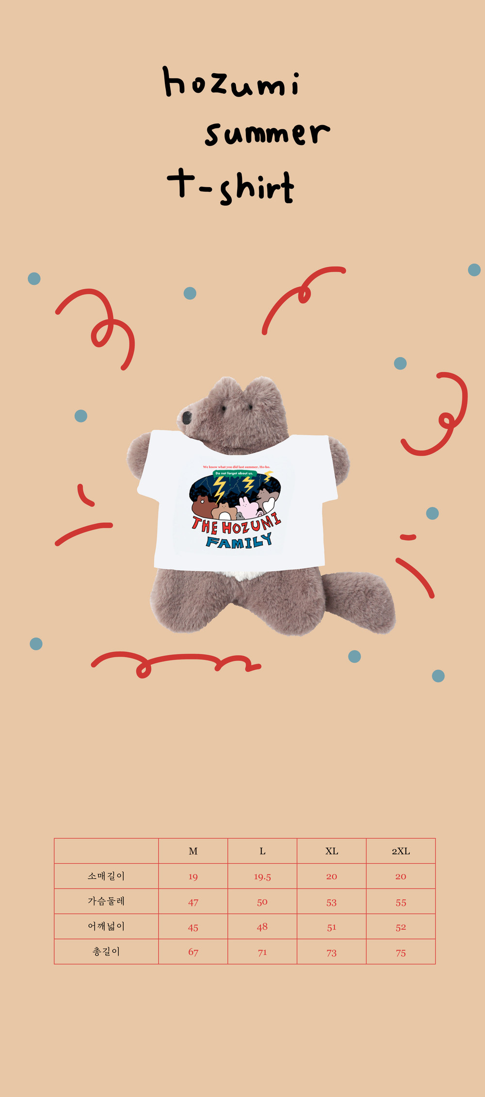 호즈미 패밀리가 모두 등장하는 일러스트 프린팅이 포인트입니다.