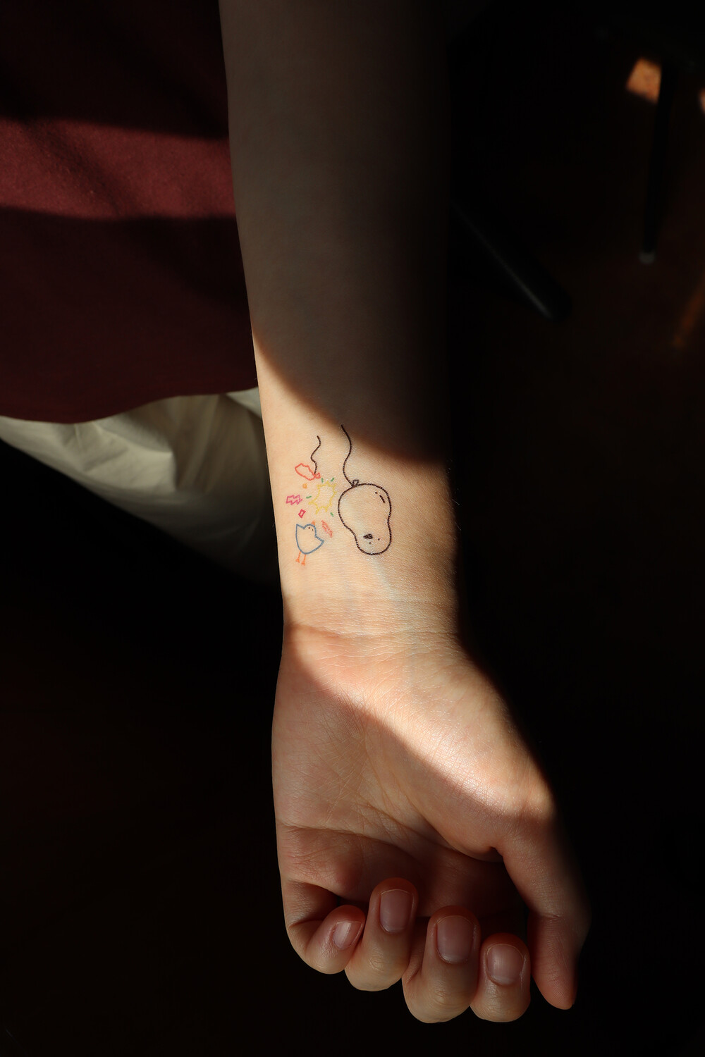 3. 자른 스티커의 비닐을 떼고, 원하는 부위에 그림 부분이 닿도록 붙여줍니다.