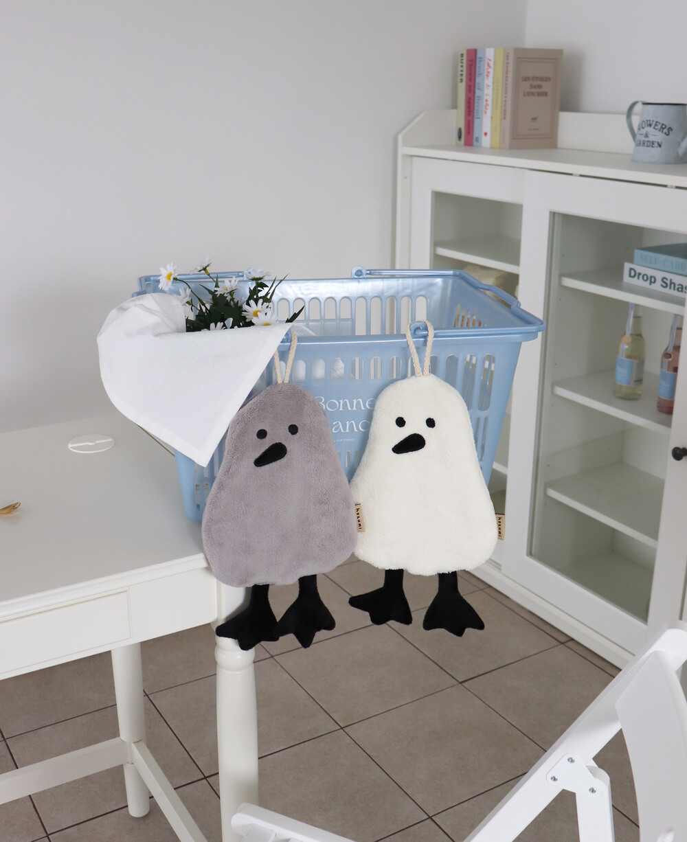 미니 세이호와 크림 세이호로 만든 핸드타월입니다.