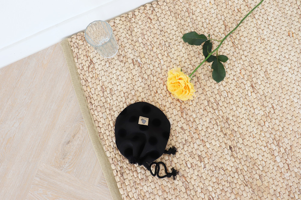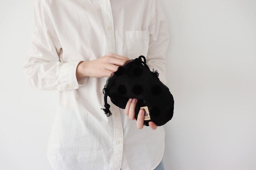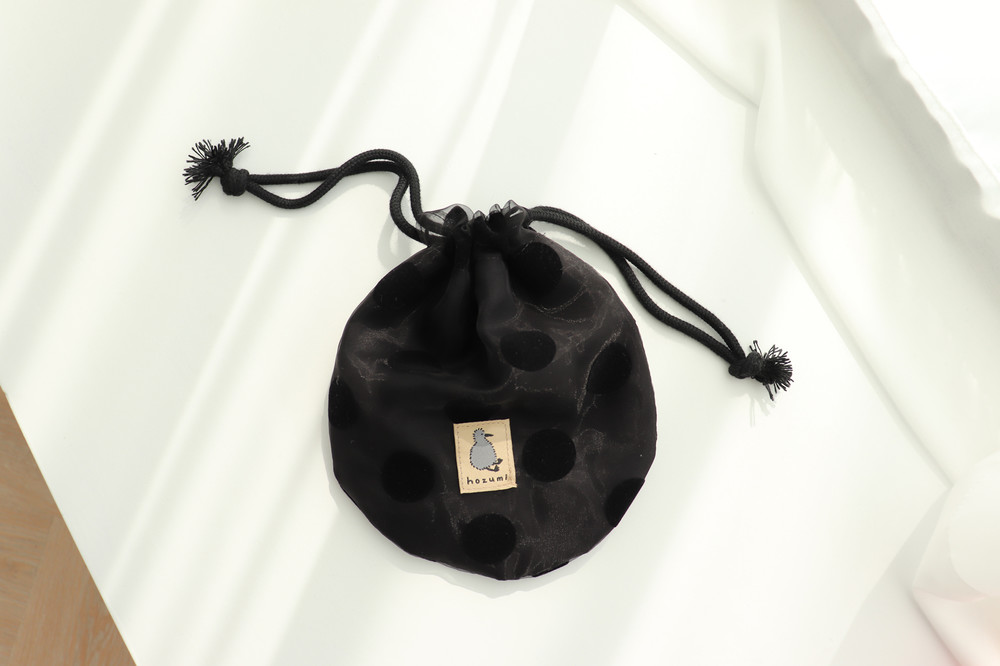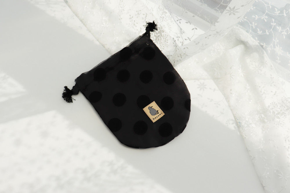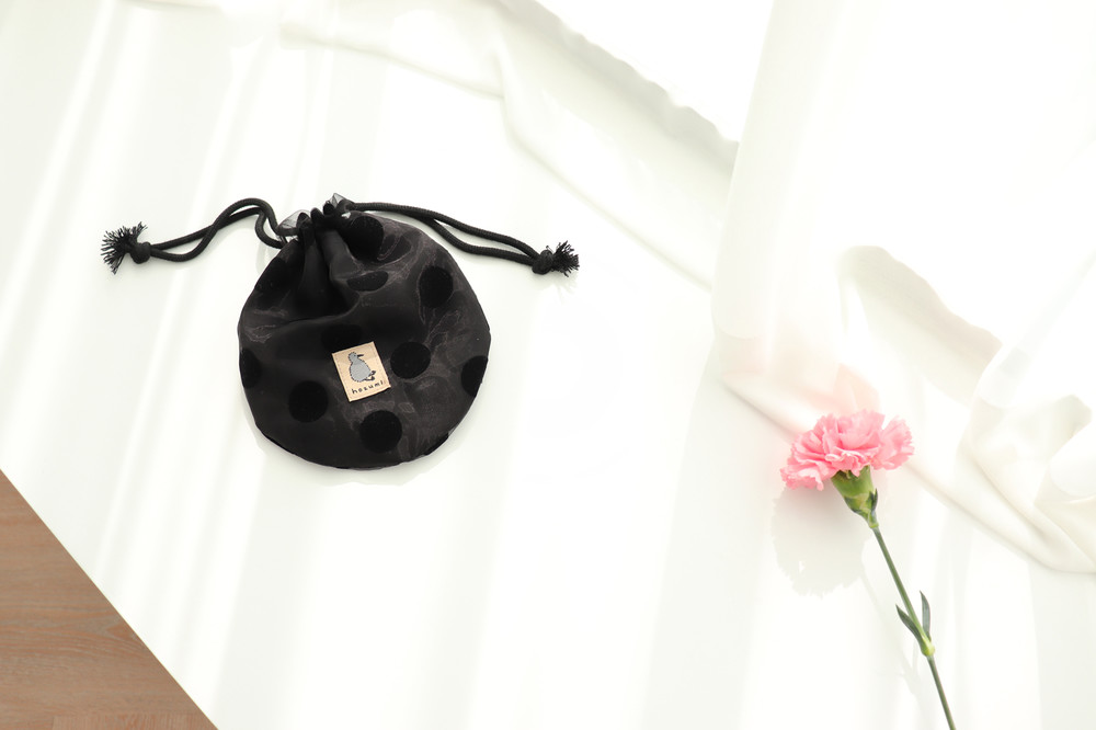 올블랙인것처럼 보이지만 안감, 겉감, 도트 세가지 질감이 레이어를 이루며 입체적인 느낌을 줍니다.