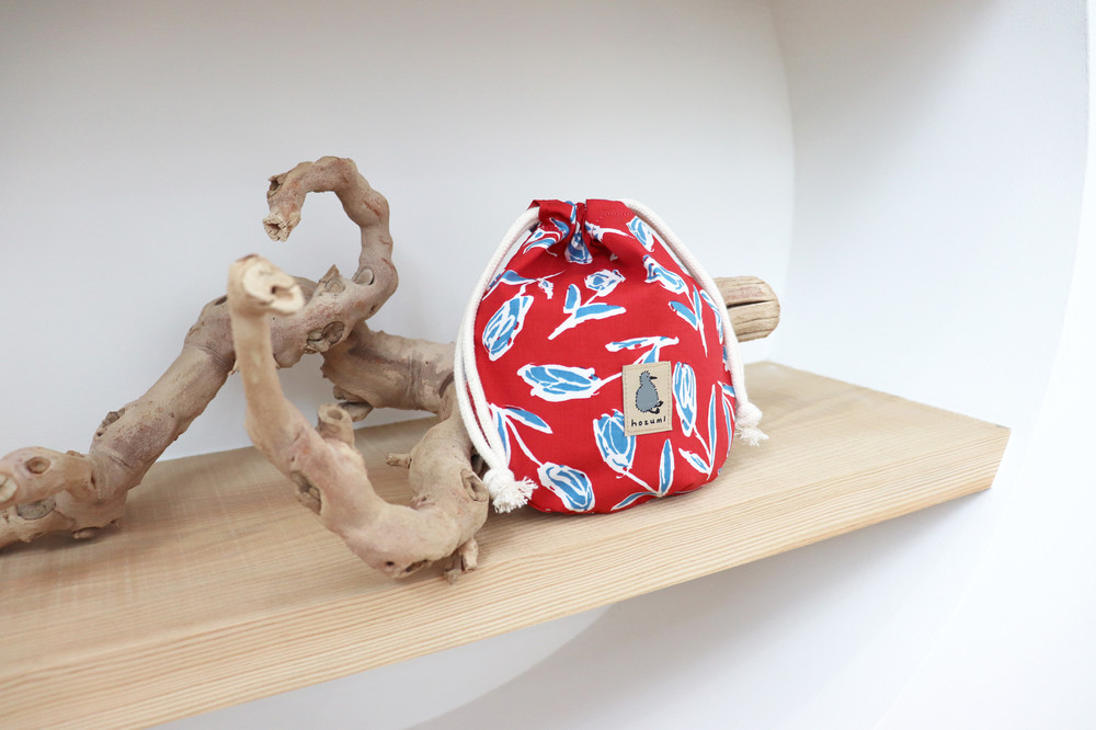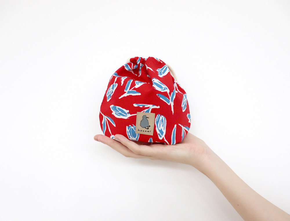겉감은 빨간바탕에 파란 꽃이 그려져있는 패턴이 돋보이는 면직이고 안감은 내츄럴 아이보리 광목면입니다.
